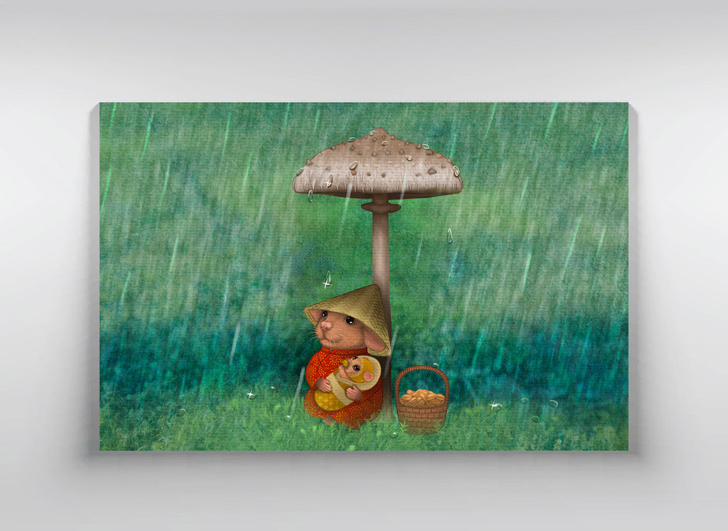 Canvas with illustration from Lucky Laika artist Olivia Lipartia. The picture "Let my love be the umbrella in your stormy days" is inspired by the same proverb and is one of our "Proverbs" series pictures.