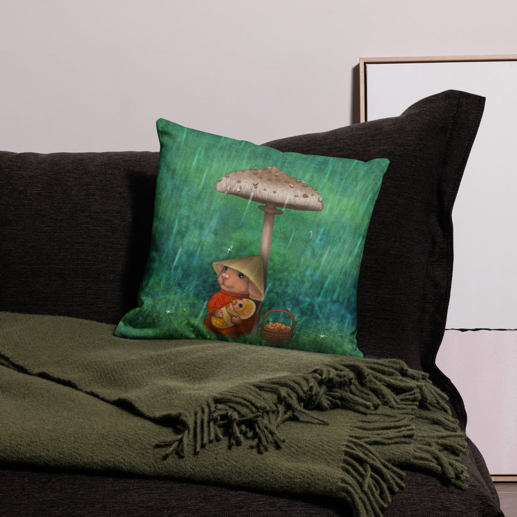 Premium feel pillow with illustration from Lucky Laika artist Olivia Lipartia. The picture "Let my love be the umbrella in your stormy days" is inspired by the same proverb and is one of our "Proverbs" series pictures.