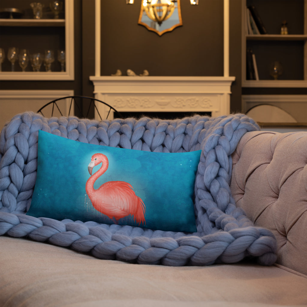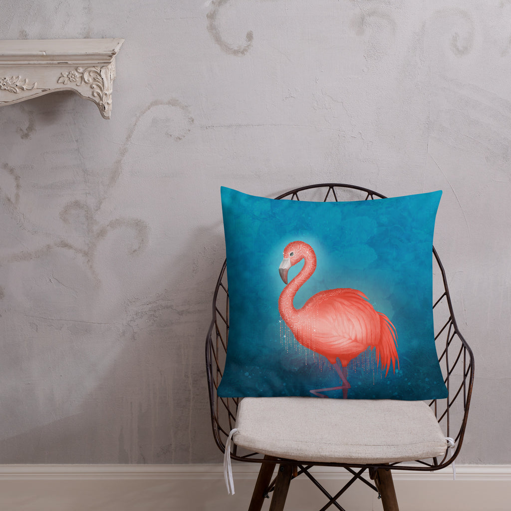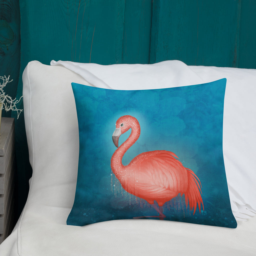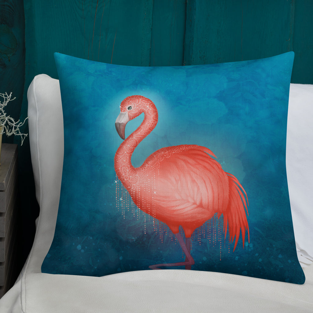 Premium pillow "Only a fool tests the depth of a river with both feet" (flamingo)