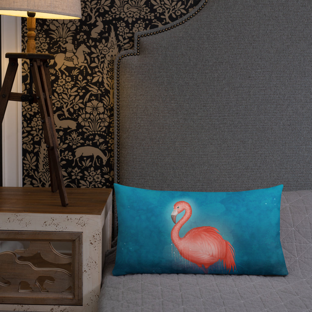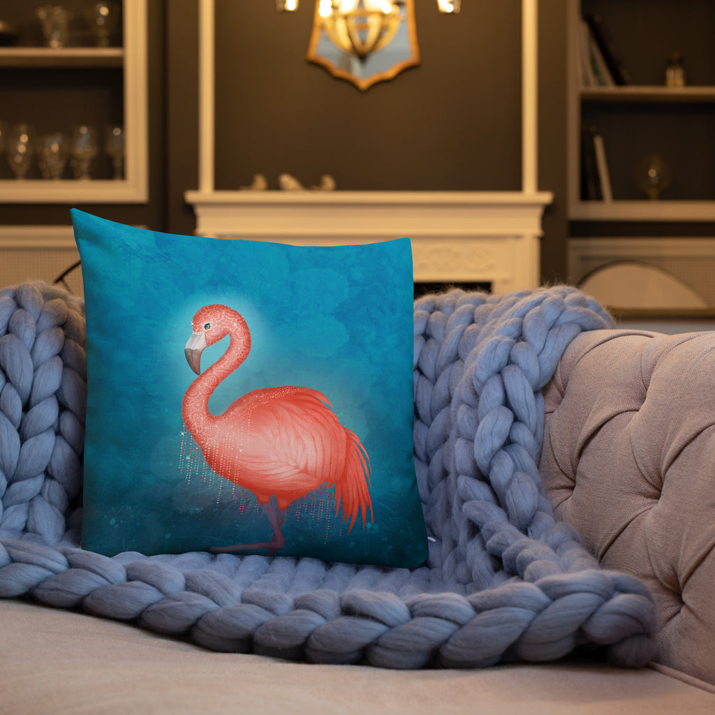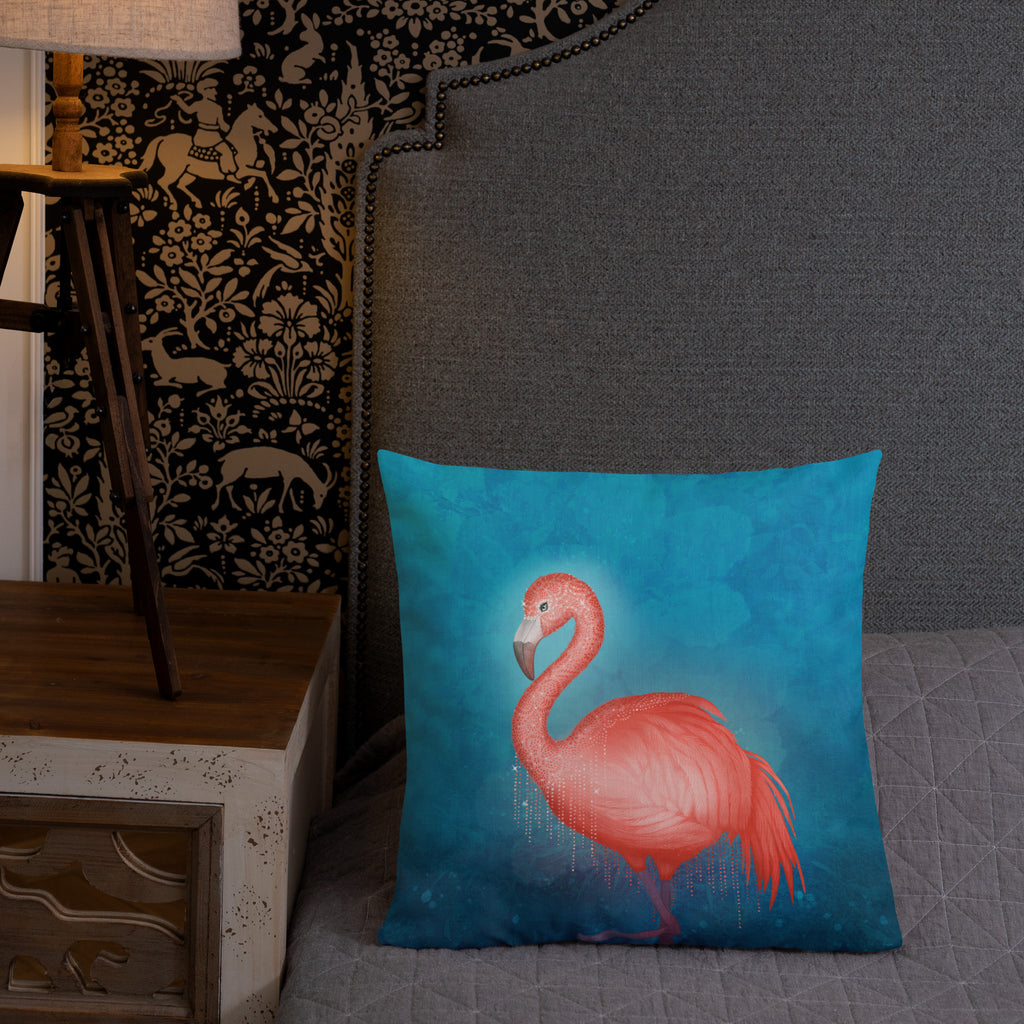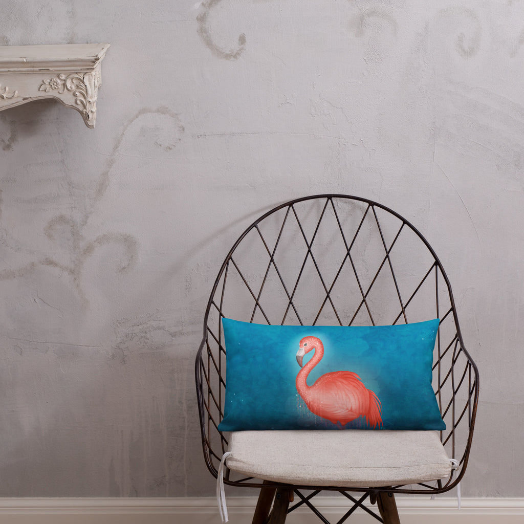 Premium pillow "Only a fool tests the depth of a river with both feet" (flamingo)